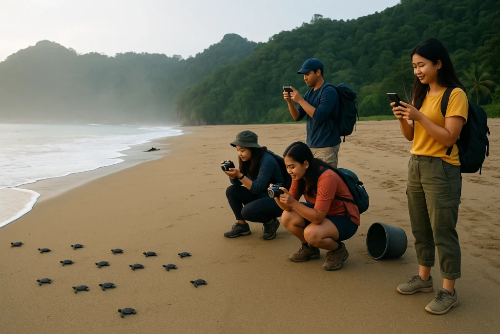 Pengalaman melepas tukik ke samudera di Sukamade Banyuwangi memberikan sensasi unik dan membantu konservasi penyu dengan wisata alam edukatif.